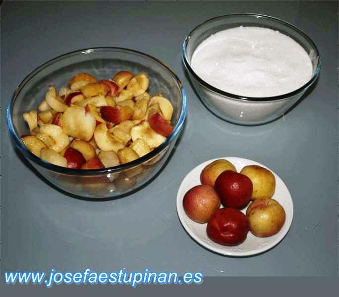 • Azúcar (la cantidad se determinará luego, tras limpiar, trocear y eliminar la semilla de la fruta)