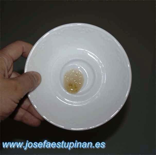 9. Pon una cucharadita de mermelada en el plato, pasados unos segundos vuelca suavemente el plato. La mermelada se deslizará por él pudiendo establecer la consistencia que deseemos y ese será el momento de retirar el caldero del fuego.